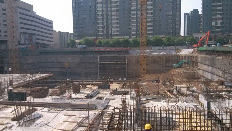 本工程位于北人字路與龍王廟街交口的東北角。是在原北國商城西側進行擴建工程,地上10層、地下4層、采用筏板基礎、框架結構。工程±0.000為72.500m,基底標高為-19.900m。現有地面標高為-0.400m。基坑實際開挖深度由現有地面算起為19.50m(南側、西側、北側)、12.00m(東側:原北國商城)。整個基坑周長約400.00m。
